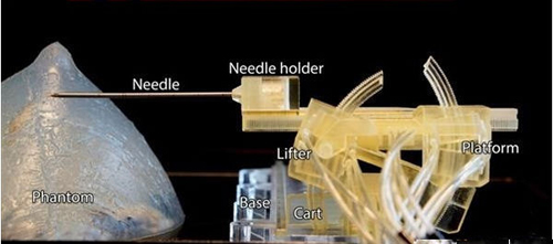 西班牙Twente高校機器人與機電一體化試驗室(RML)近日利用三維打印和機器人科研開發出了一種全名是Stormram 4的新式醫療機器人。它能夠 在一臺MRI(磁共振顯像)設備中運作,進而令對癌病(尤其是乳癌)的檢測和醫治越來越更非常容易。