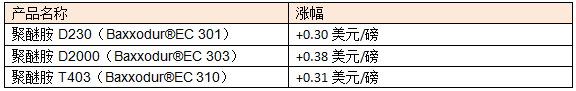 巴斯夫宣布將在北美地區提高以Baxxodur®品牌銷售的聚醚胺的價格,自2021年4月1日或根據現有合同允許時間起生效。
