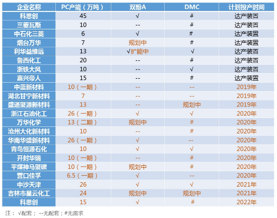 目前規劃中的聚碳酸酯項目一體化程度逐步提升,一方面煉化一體化項目建設;另一方面企業延伸產業鏈需求也較為強烈。