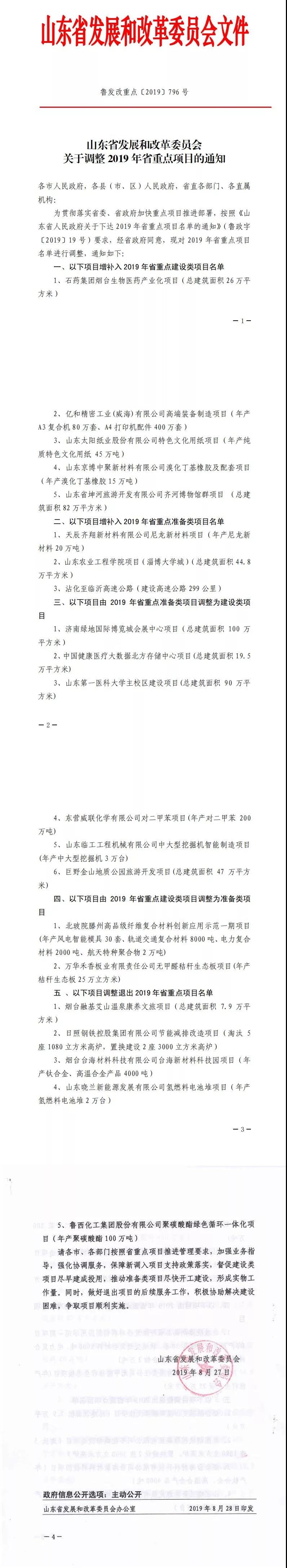 (2019年1月23日山東省重點(diǎn)項(xiàng)目名單)
