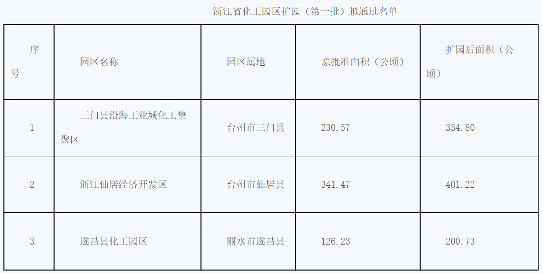 公示!浙江省化工園區擴園(第一批)擬通過名單