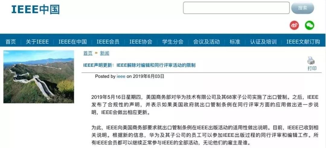 【IEEE聲明:解除對華為員工編輯和同行評審活動的限制】今日,IEEE發布最新聲明稱,IEEE向美國商務部要求就出口管制條例在IEEE出版活動的適用性做出說明。目前,IEEE已收到相關說明。根據新的信息,華為及其子公司的員工可以參加IEEE出版過程的同行評審和編輯工作。所有IEEE會員都可以繼續正常參與IEEE的全部活動,無論他們的雇主是誰。