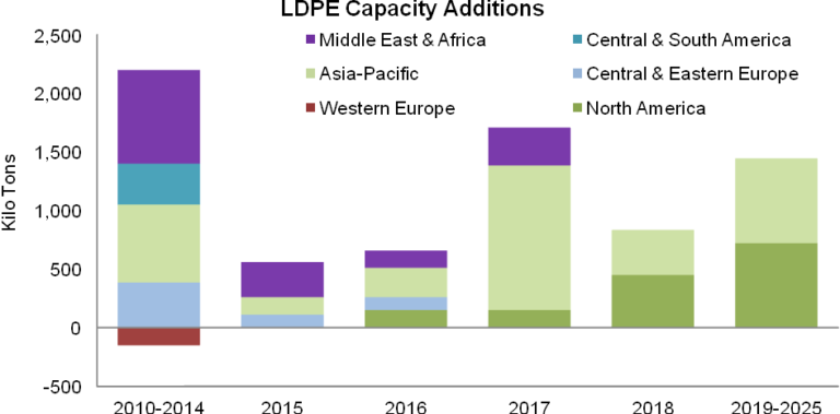 LDPE產能增加(2010-2025)