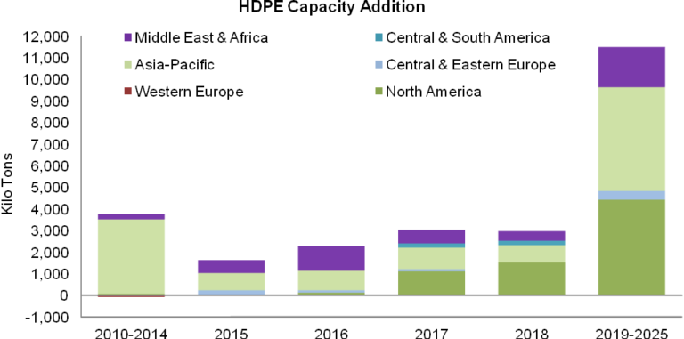 HDPE容量增加(2010-2025)
