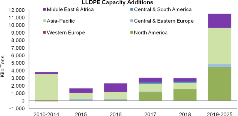 LLDPE容量增加(2010-2025)
