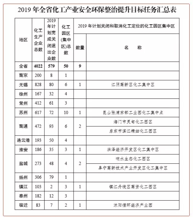 江蘇計劃封鎖9個化工園區、封鎖1431家、整治4022家化企