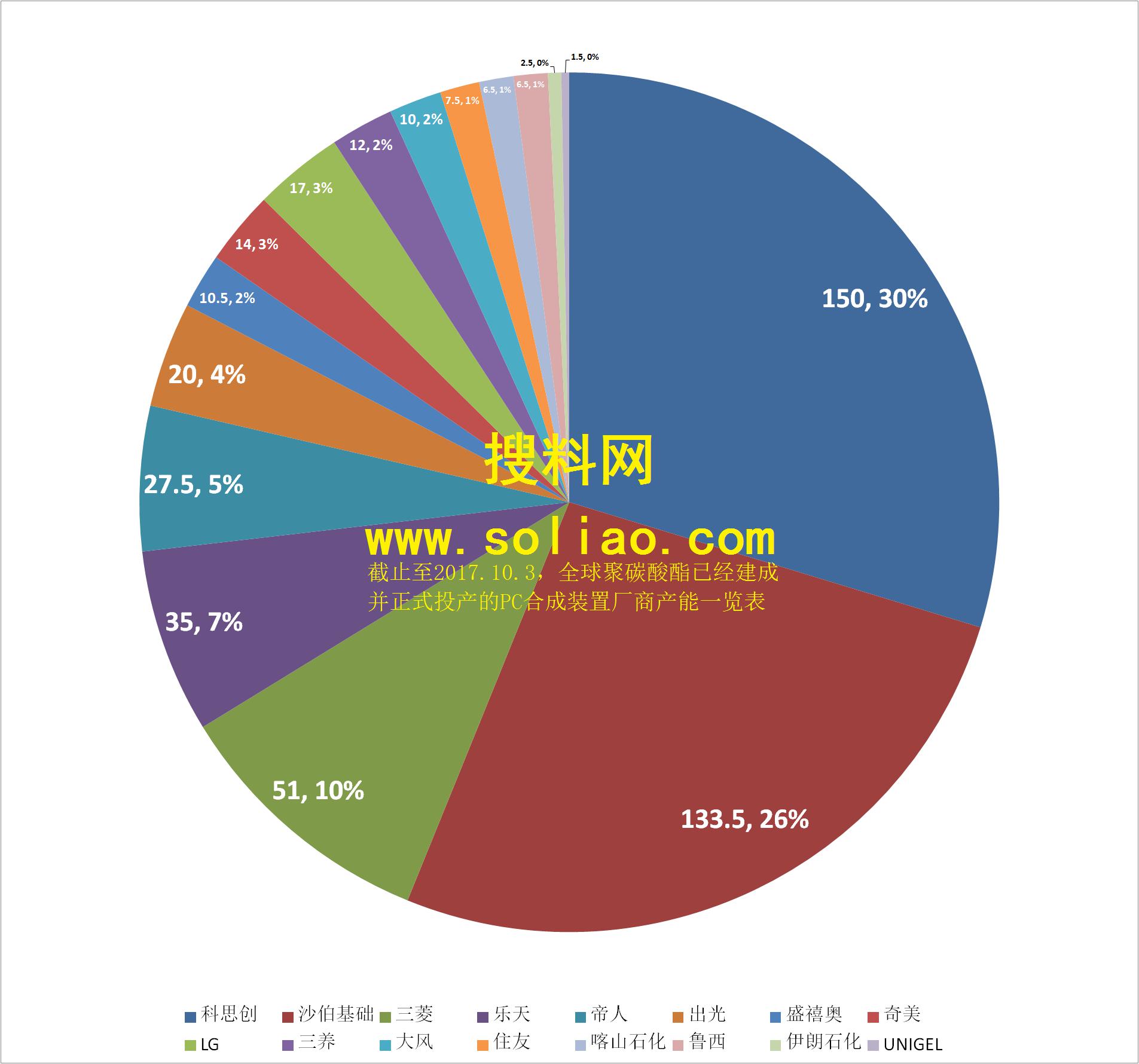截止至2017.10.03,全球聚碳酸酯已經并準備正式投產的合成裝置產能一覽表(產能:萬噸) | |||||||