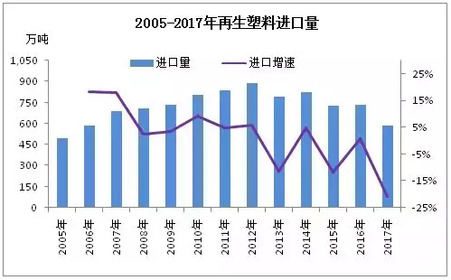 2013年“綠籬行動(dòng)”開(kāi)始,廢塑料進(jìn)口增速下行,但其進(jìn)口量仍在700-800萬(wàn)噸。