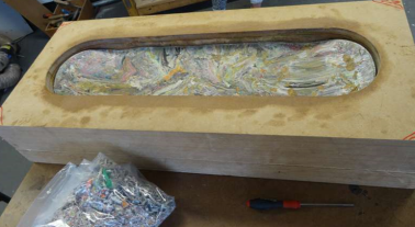 兩年前他逐漸試著解決收購 塑料:搜集到密度高的高壓聚乙烯包裝袋后,他將其剁碎并升溫熔融。當溫度加至130度,塑料逐漸越來越像黏土一樣有延展性和可塑性,然后他們熔在一起容積也隨著減少。這時另加不斷工作壓力,熔融的塑料被壓模成一個牢靠的物件,在這個全過程中,汽泡被清除,塑料逐漸變為一種新型材料,具備難以置信的高韌性,而且表面光潔,具備天然大理石一樣的顏色。