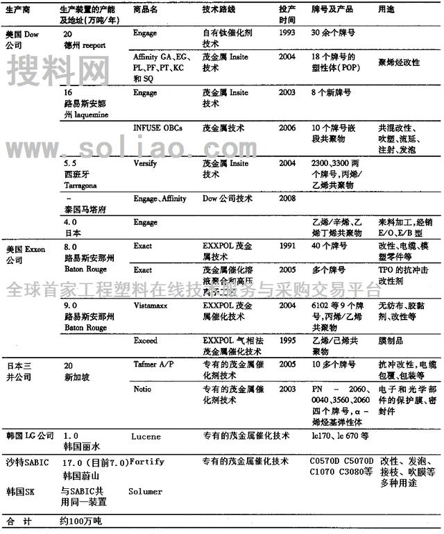 POE彈性體最早在1993年由美國陶氏化學(xué)(DOW)公司實現(xiàn)工業(yè)化生產(chǎn),目前全世界僅有六家廠商生產(chǎn),并且全是國外企業(yè)。目前,我國對POE彈性體的年需求量在15.0萬~18.0萬噸。所以全部必須要靠進(jìn)口。