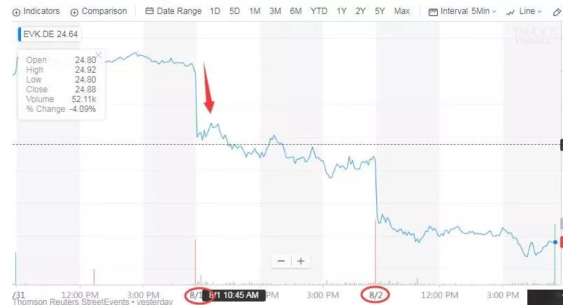 近期贏創(chuàng)發(fā)布二季度財(cái)報(bào)后,股票微下跌(8月2日下跌為特朗普宣布加征3000億關(guān)稅)。