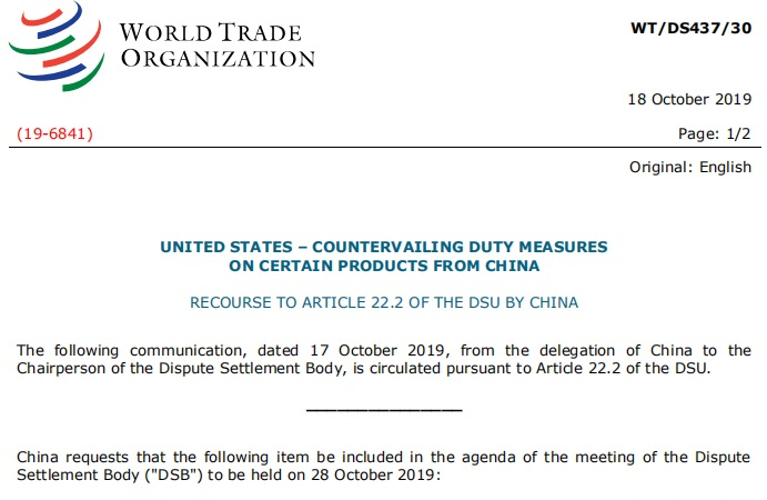 還擊!中國(guó)向WTO請(qǐng)求向美國(guó)實(shí)施24億美元制裁