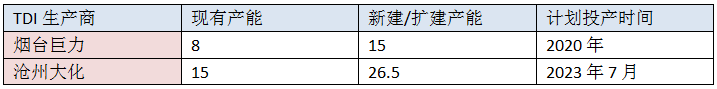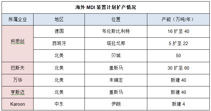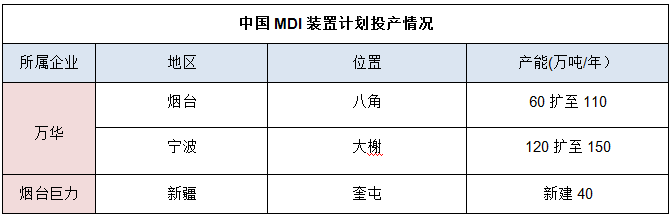 2019年聚氨酯原料擴產方案合集(MDI,TDI)
