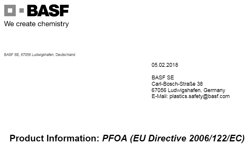 歐洲情況在美國的影響下,根據歐盟2004/1935/EC 指令下的一般安全標準(與食品接觸的材料和物質的決議),PFOA 也被禁止使用。