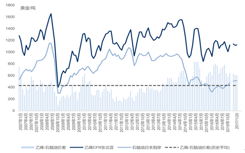 亞洲乙烯-石腦油價差兩周內達到兩年來高點