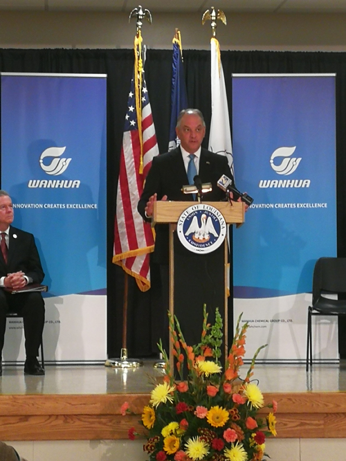 美國當地時間11月16日下午,在路易斯安那政府官員、中國駐休斯敦總領事館總領事、當地社區及客戶代表的共同見證下,萬華化學集團股份有限公司副總裁、Wanhua Chemical US Operations LLC CEO華衛琦博士與路易斯安那州州長約翰?愛德華茲先生共同宣布,萬華化學美國MDI一體化項目將正式落戶路易斯安那州St. James區Convent市。