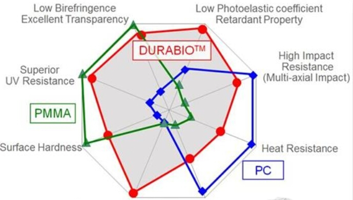 據(jù)3D虎了解,三菱化學(xué)最初開發(fā)DURABIO材料是將其作為玻璃替代品,目前,它已經(jīng)被汽車和手機行業(yè)采用,用于觸摸屏、控制臺和儀表板飾件以及外部散熱器格柵等項目的制造。DURABIO不含BPA,是一種生物基工程塑料,由植物衍生的異山梨醇制成,使其對環(huán)保客戶特別具有吸引力。