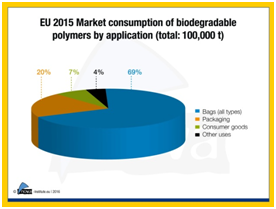 這項研究的全稱是“可降解和可降解塑料制品在歐洲的消費潛力”,研究結果表明,市面上銷售的塑料袋中,可降解塑料袋的比例已經超過三分之二,且其中大部分袋子都用于購物使用或者廢物收集。雖然其用途單一,但是由于應用范圍廣泛,所以體量巨大。可生物降解聚合物的研究小組進行了消費者習慣分析,并綜合考慮市場發展情況與經濟、地理位置等條件,統計出了可降解生物塑料制品市場在2015年已達到10萬公噸這一總量。