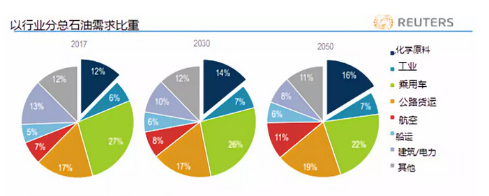 IEA稱,隨著電動汽車的發展,以及發動機能效提高,到2050年時交通對石油的需求料放緩,但這會被石化產品需求增長抵消。