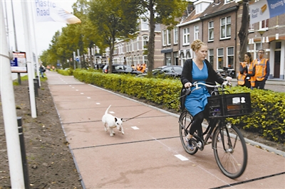 荷蘭用可再生塑料建成世界首條環保 自行車道