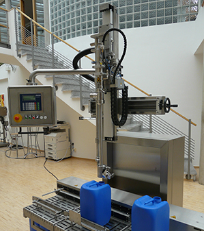 圖2:Fricke在其設備的灌裝頭中使用了免潤滑且耐磨損的drylin SLW直線產品系列組成的絲桿升降模組,來提高設備性能并降低成本。