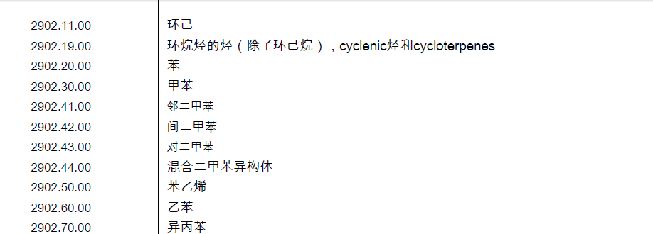 清單涵蓋了從石油、天然氣等上游資源到烯烴、苯、酚類等化工原料,從各種金屬單質到氧化物、鹵化物、鹽類等化學品,以及化肥、農藥、涂料、輪胎等化工終端產品。
