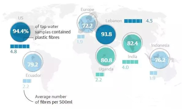 美國《衛報》對于此事做出獨家新聞,美國非盈利性組織Orb Media生物學家對數十個我國的自來水樣版調查分析后發覺,總體而言,83%的自來水都被塑料纖維所污染。