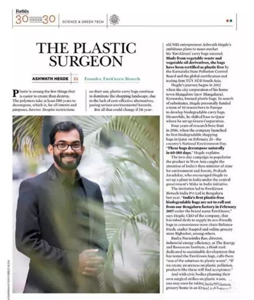 “我是個印度教徒, 太陽光、土地資源、水對我來說都是有神明,為了更好地自身的子孫后代沒有廢棄物中存活,大家務必作出更改。”他是「Ashwath Hedge」,EnviGreen企業創辦人,他不但當選了2017年度《福布斯》雜志期刊“30under30”,并且也讓世界各國環保局競相因他而燒開,全是由于他有一項能夠 改變命運的創造發明。