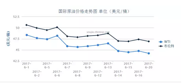 美國WTI原油7月期貨結算價為每桶44.2美元,比前一交易日收跌0.54美元,跌幅約1.2%。布倫特原油8月期貨結算價每桶46.91美元/桶,收跌0.46美元,跌幅1.0%。