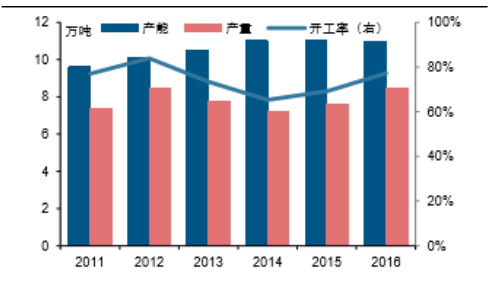 BOPA產能增長速度變緩,領域產銷率回暖。BOPA薄膜生產工藝流程同歩法和多線程法二種。同歩法加工工藝繁雜,產品構造勻稱,品質較好,運用于中高檔銷售市場;多線程膜則加工工藝簡易,適用中低檔銷售市場。中國在產BOPA薄膜公司有十多家,大多數為多線程法,朝向中低端銷售市場,處在提供產能過剩情況。僅有廈門市長塑和滄州明珠有著同歩法生產流水線,具備顯著的核心競爭力。特別是在尤尼吉可(我國)的4500噸同歩法產能停業整頓后,高檔商品供求局勢趨于緊張。自2011年至今,在我國BOPA產能從9.六萬噸飆升至2016年的11萬噸級,年平均復合增速為2.3%。BOPA生產量則從2011年為7.39萬噸級升高至2016年的8.五萬噸,尤其是2016年因為商品漲價,BOPA生產量快速提高,領域產銷率顯著回暖。短期內領域內暫未新建成投產公司。