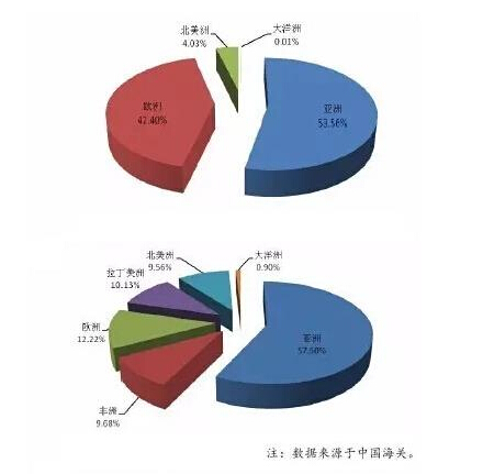 進口來源于地層面,1~4月從亞洲地區進口塑料機械金額占有率53.56%,在其中從日本進口額同比減少5.5%;從歐州進口額占有率42.4%,在其中從法國進口額同比增幅達到近50%。