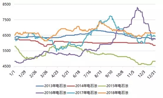 2013-2018 年華東地區PVC電石法價格走勢圖
