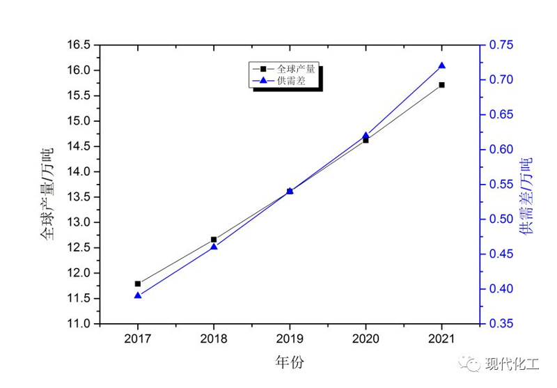全球PPS產業化需求將隨著環保、汽車和電子工業的發展而繼續穩步增長,2017—2021年全球市場仍將會保持較大的供需差,詳下圖。
