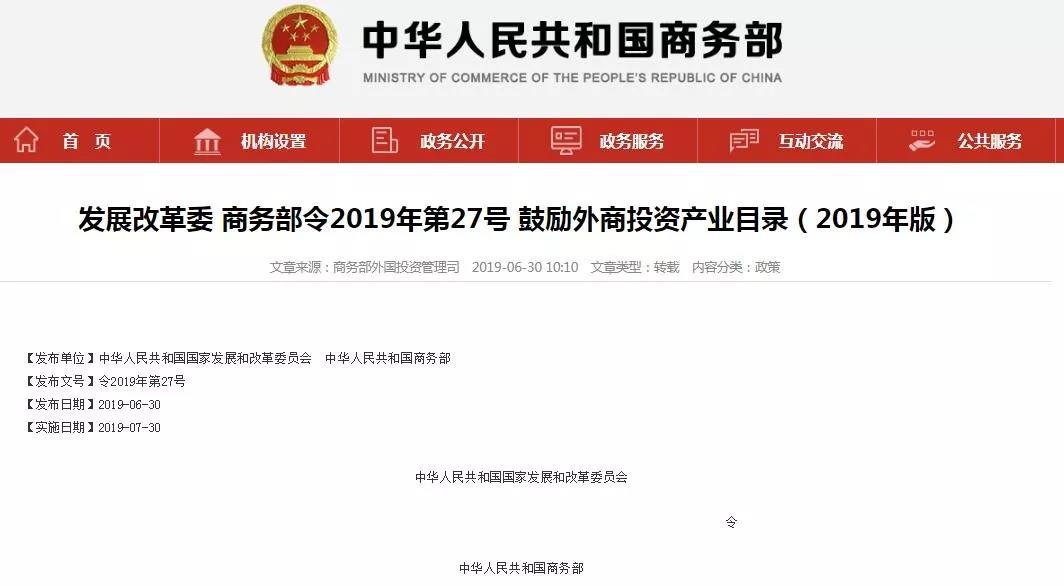 2019負面清單和鼓勵外商投資產業目錄發布,添加鼓勵項目添加負面清單
