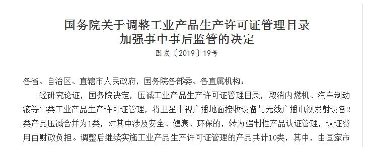 放寬!國務院:取消13類工業產品消費答應證管理