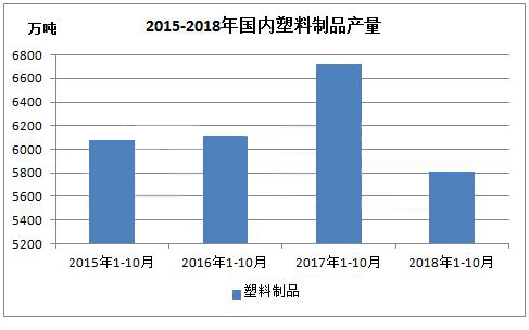 2018年1-10月國內(nèi)塑料制品產(chǎn)量共計5813.3萬噸,較去年同期降13.52%。由于國內(nèi)環(huán)保因素嚴(yán)格控制再生料用量,再生料使用萎縮,中美貿(mào)易戰(zhàn)大背景下,代加工減少,以上因素導(dǎo)致塑料制品產(chǎn)量下降。塑料制品產(chǎn)量下降,主要影響到再生料的使用上,而對于新料影響不大,國內(nèi)新料供應(yīng)量繼續(xù)增加,國內(nèi)石化及各個環(huán)節(jié)新料庫存并沒有大量積累。
