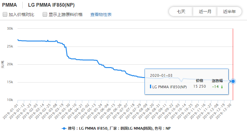 2019年,全球經(jīng)濟疲軟,低迷的下游市場造成PMMA價格下滑。