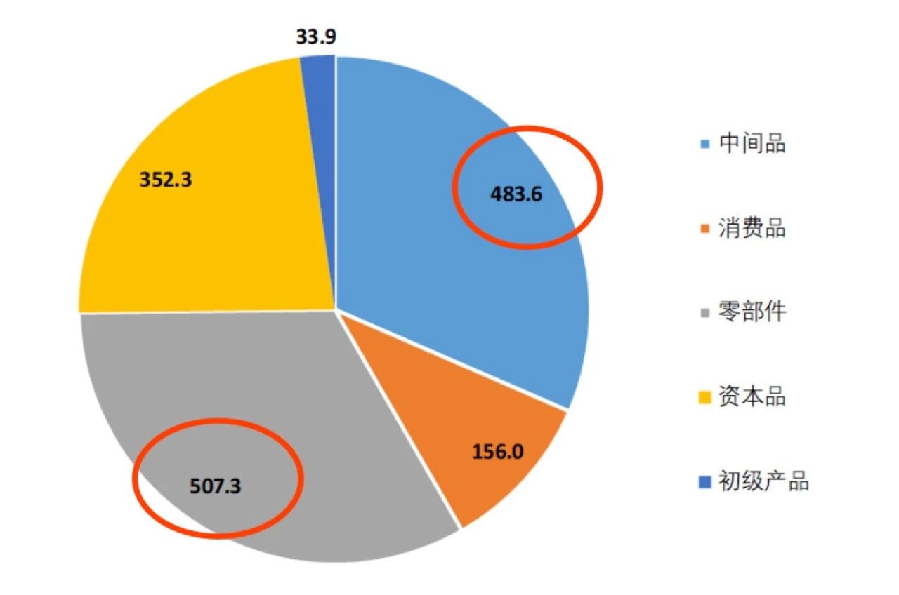 接下來,對占比最大的零部件行業進行二次挖掘,找出可能受沖擊最大的細分行業有哪些。