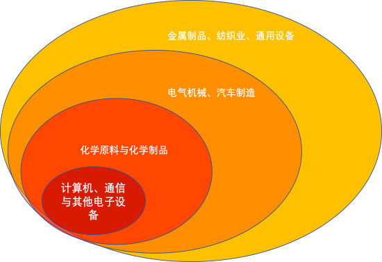二是高技術制造鏈條,主要包括電氣設備、機械設備以及電子光學設備行業。