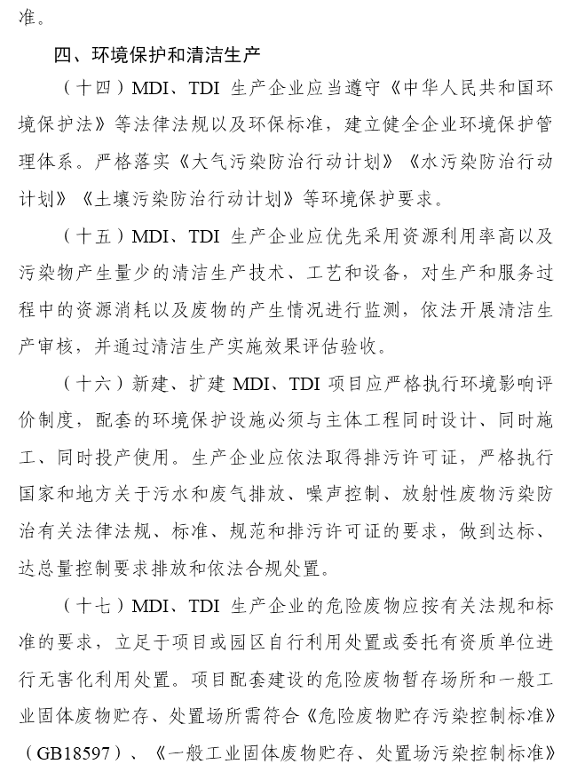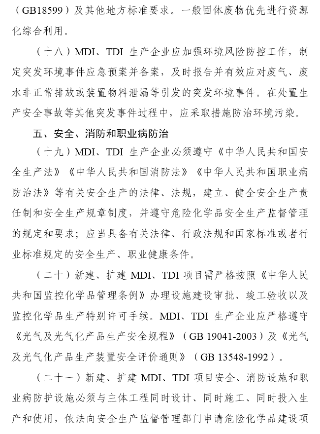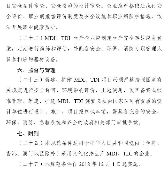 11月7日發布消息,為促進二苯基甲烷二異氰酸酯(MDI)、甲苯二異氰酸酯(TDI)行業健康發展,嚴格新建項目建設標準,工業和信息化部制定了《二苯基甲烷二異氰酸酯(MDI)、甲苯二異氰酸酯(TDI)項目建設規范條件》,自2018年12月1日起實施。