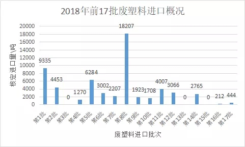8月3日,2018年第17批建議批準的限制進口類申請明細表公示,共有2家廢塑料加工利用企業獲得批文,核定進口總量為444噸。