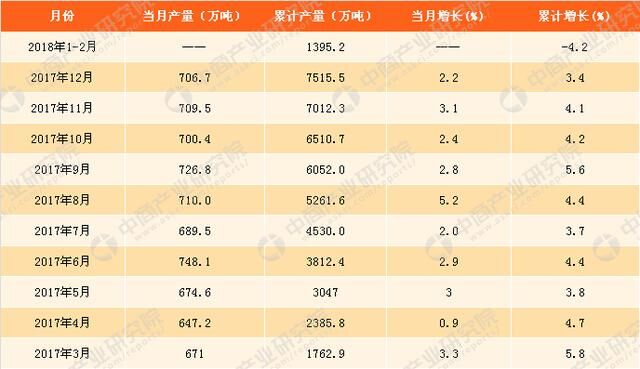 據中商產業研究院大數據庫數據顯示,2018年1-2月,中國塑料制品行業產量1395.2萬噸,與去年同期相比下降4.2%。