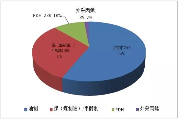依照原料來源于歸類,預計到2017年底,在我國油制聚丙稀產能將占總產能的57%,依然是全國各地最關鍵的生產過程。煤制聚丙稀產能占有率將超出30%,此數據信息中包含數套乙醇制裝置及其神華寧煤的煤化工生產加工新項目。PDH裝置投產增長速度也迅速,預計將占據全國各地總產能的10%。
