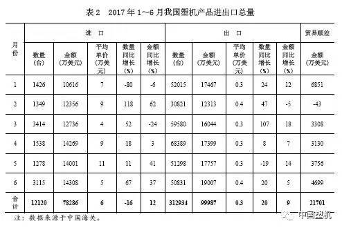 2017上半年度在我國塑機商品進出口詳細情況見表2~表5,圖2~圖6。