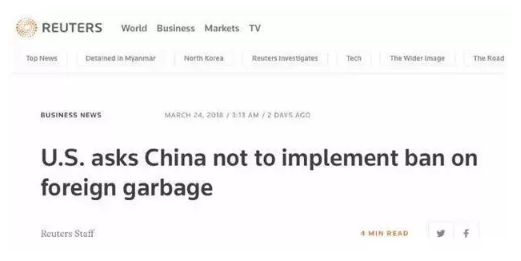 在3月23日舉行的WTO貨物貿易委員會會議上,美方代表表示,中國對于可回收品的進口限制已經極大地中斷了全球廢金屬供應鏈的運轉,要求中國取消對“洋垃圾”的進口禁令。