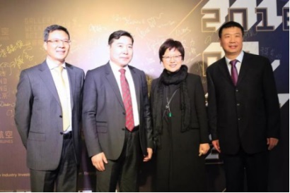 盈創(chuàng)集團(tuán)董事長(zhǎng)楊光澤(右一)、常務(wù)副總經(jīng)理劉學(xué)頌(右二)與798藝術(shù)區(qū)創(chuàng)始人王彥伶先生(左二)合影
