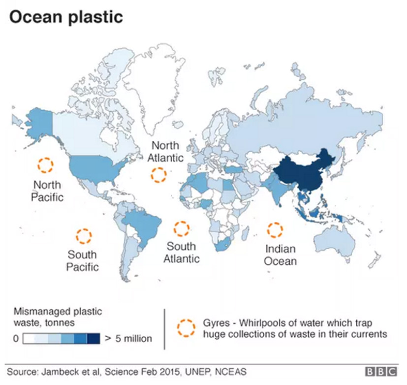 每年,都有數百萬噸的塑料進入海洋。一些漂流到稱為“環流”的循環的洋流的大系統中,塑料一旦被困在環流圈里,就會分解成微塑料,可能被海洋生物攝取。