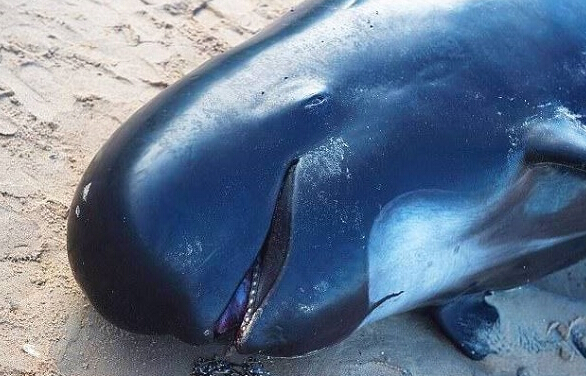 圖為擱淺在朗格爾海灘的巨頭鯨。