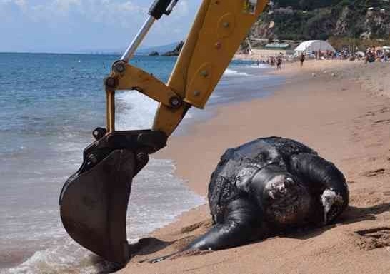 西班牙海灘發現珍稀棱皮龜?因誤食塑料渣滓死亡