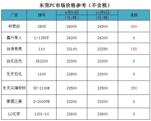 節后東莞PC價格上漲